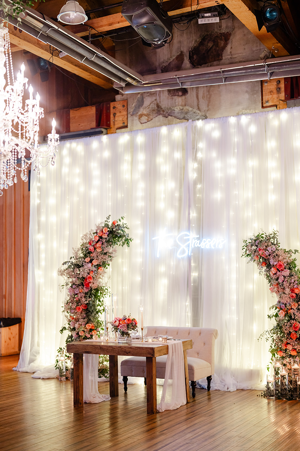 Lighted backdrops combine soft fabric with bistro or mini lights placed behind the fabric to create a warm, glowing focal point. The layered lighting adds depth, softness, and ambiance, making it ideal for ceremonies, sweetheart tables, stages, and photo backdrops that photograph beautifully.