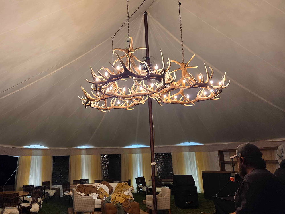 Antler chandeliers offer a unique mix of rustic charm and warm elegance, creating a bold focal point that adds texture and character to a space. They are ideal for barn venues, lodges, mountain settings, and tented events where an organic statement feels intentional and elevated.