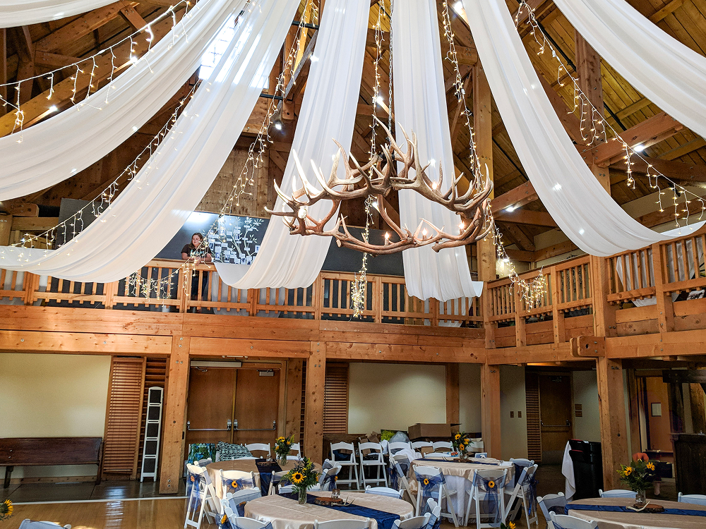 Styling: Antler chandeliers pair beautifully with soft draping or greenery to soften their bold silhouette and create a warm, elevated look.