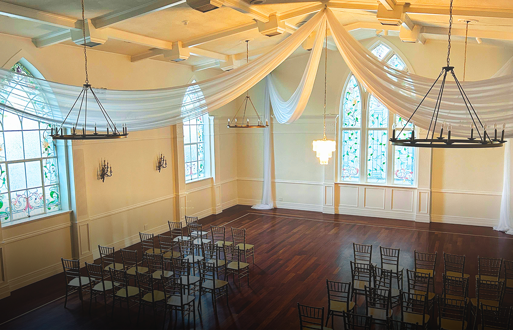Styling: Spoked pinched draping looks especially stunning with mini lights placed behind the fabric, creating a soft glow that highlights the shape and adds warmth and dimension to the space.