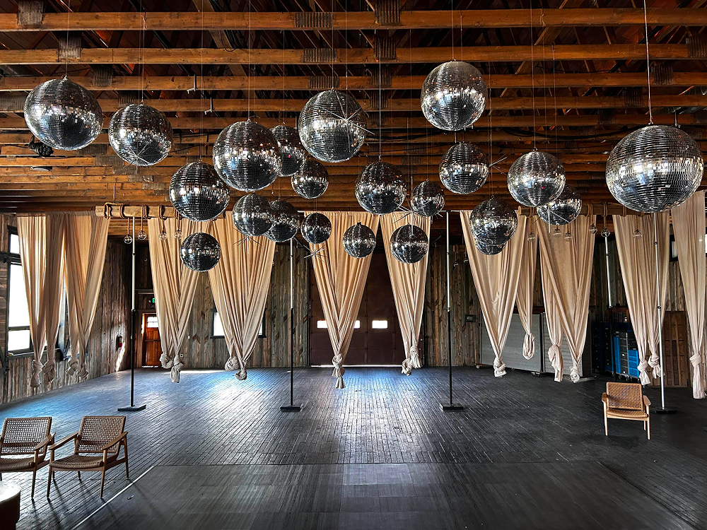 Disco balls add a playful yet elevated element to a space, reflecting light to create movement, sparkle, and energy throughout the room. They work well in a wide range of settings, from modern and eclectic designs to romantic celebrations looking for a fun, unexpected touch.