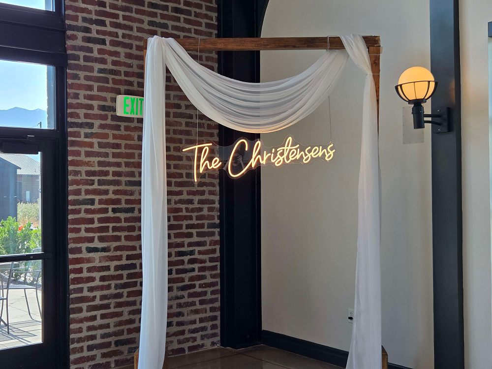 Our LED signs add a modern, personalized glow to your event, featuring your names, a favorite quote, or custom phrase as a bold focal point for backdrops, bars, and photo areas. Choose from our rental collection or create a custom sign to keep long after your event.