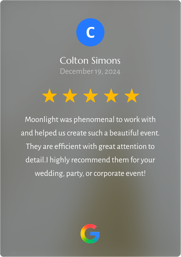 For over 20 years, Moonlight has been the trusted choice for wedding planners, venues, and families across Utah & surrounding states, designing and installing thousands of customized lighting solutions. From backyards to churches and nearly every venue in the state, we bring your vision to life with a full range of options, including uplighting, spark machines, chandeliers, disco balls, marquee letters, fairy lights, and drapery backdrops with ceiling treatments.