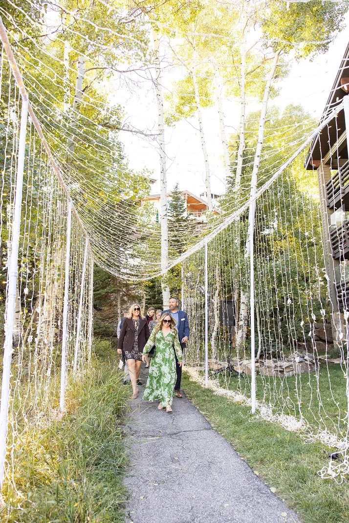 Our mini light tunnels create a soft canopy of overhead strands and cascading lights, adding depth and warmth while naturally framing pathways or dining spaces.