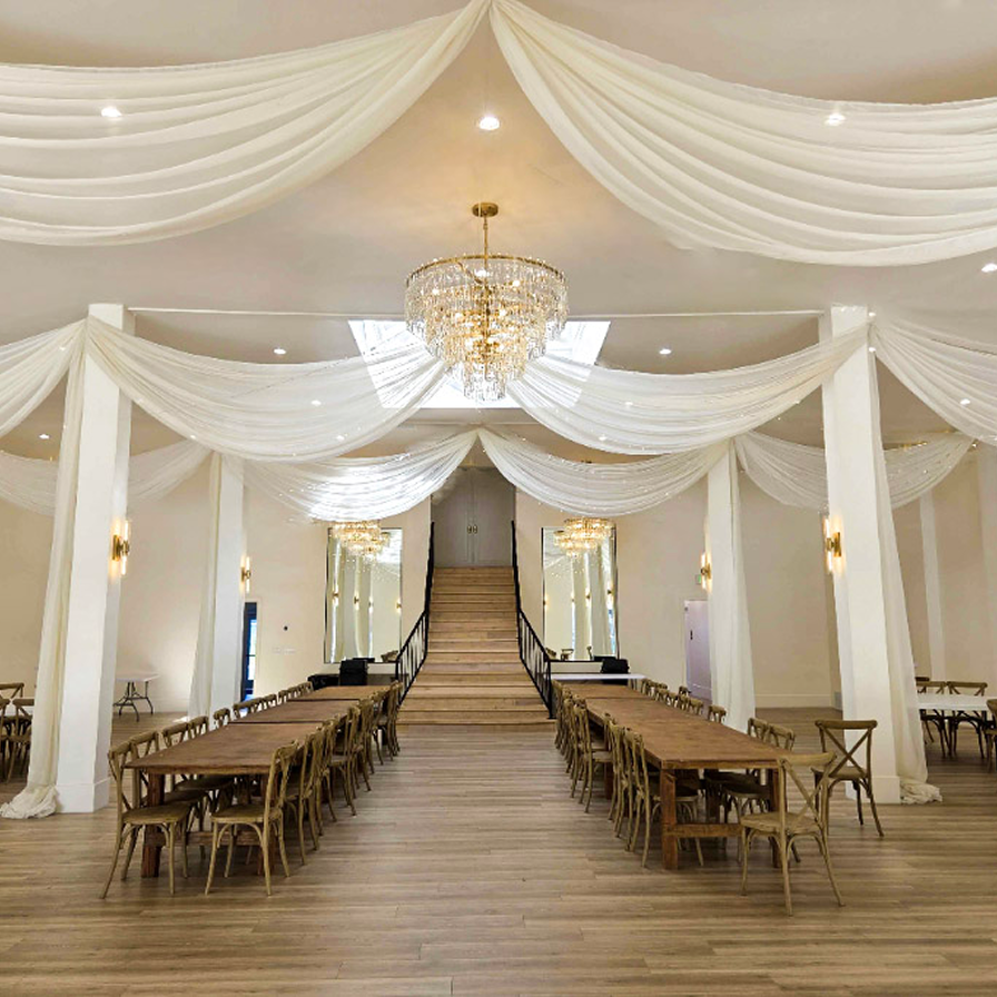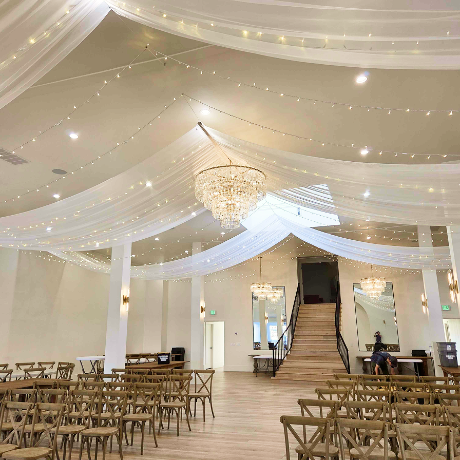Moonlight Lighting loves working at 4U Ranch, where rustic charm meets wide open views. Thoughtfully placed lighting, from bistro lights outdoors to chandeliers inside the barn, enhances the venue’s natural beauty and creates a warm, welcoming atmosphere for every celebration.