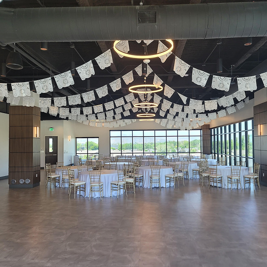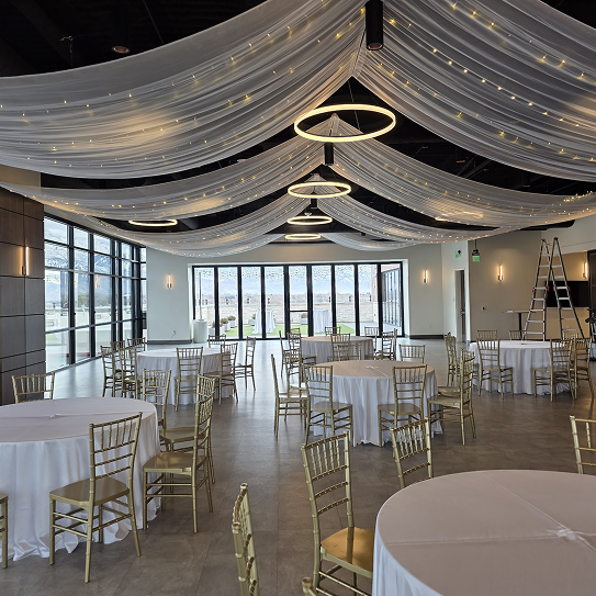 Moonlight Lighting loves working at 4U Ranch, where rustic charm meets wide open views. Thoughtfully placed lighting, from bistro lights outdoors to chandeliers inside the barn, enhances the venue’s natural beauty and creates a warm, welcoming atmosphere for every celebration.