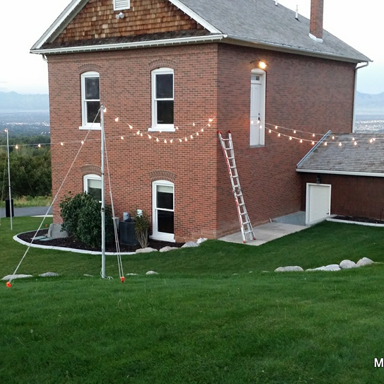 Moonlight Lighting loves working at 4U Ranch, where rustic charm meets wide open views. Thoughtfully placed lighting, from bistro lights outdoors to chandeliers inside the barn, enhances the venue’s natural beauty and creates a warm, welcoming atmosphere for every celebration.