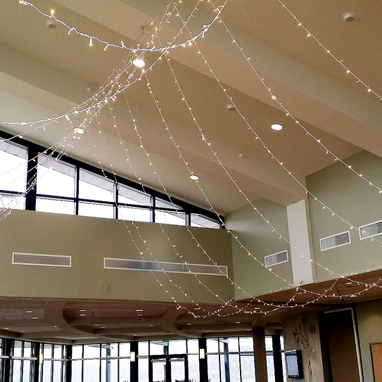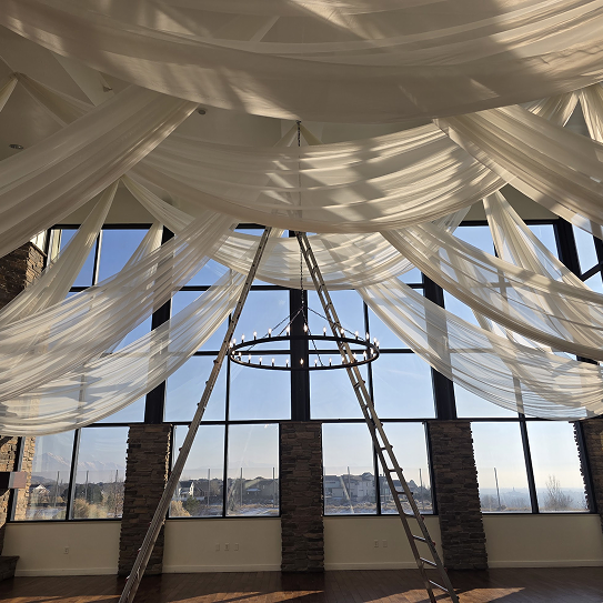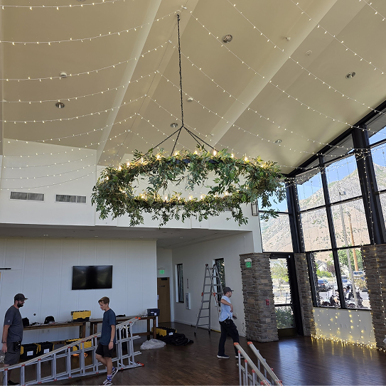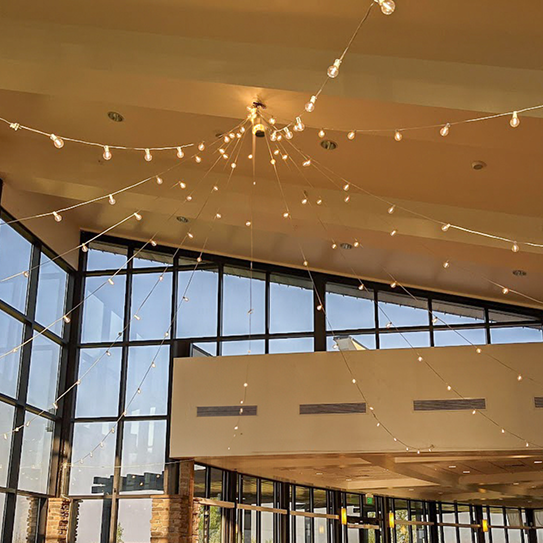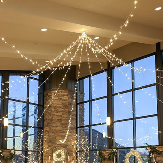 Moonlight Lighting loves working at 4U Ranch, where rustic charm meets wide open views. Thoughtfully placed lighting, from bistro lights outdoors to chandeliers inside the barn, enhances the venue’s natural beauty and creates a warm, welcoming atmosphere for every celebration.