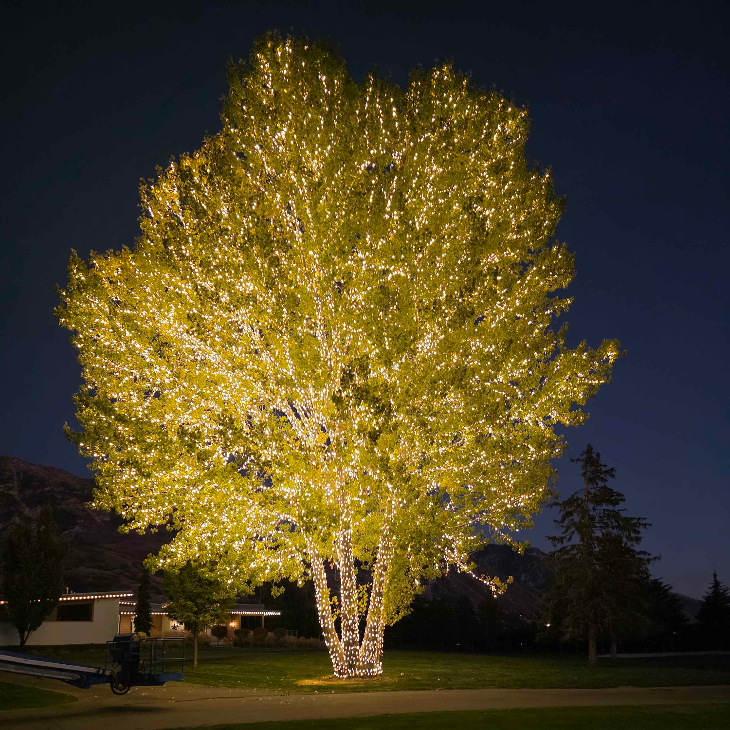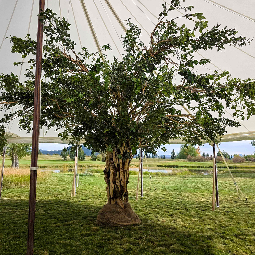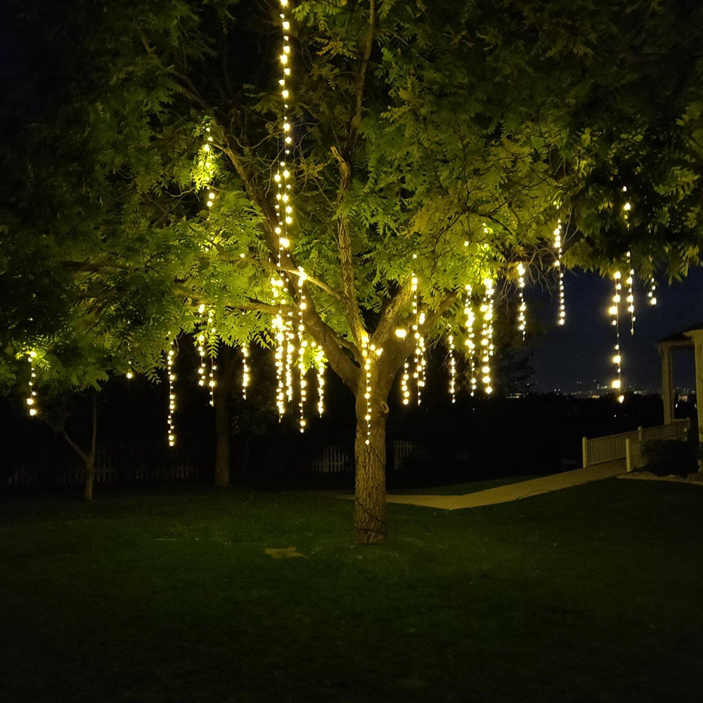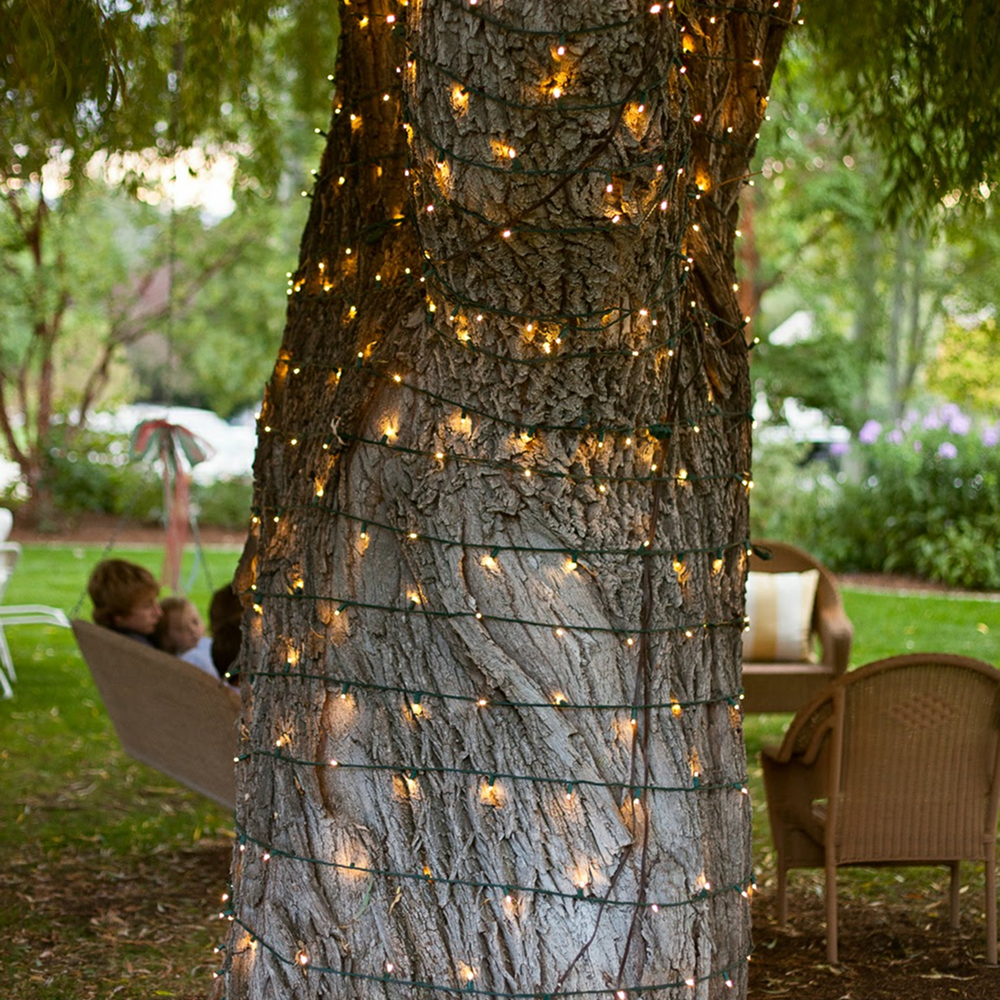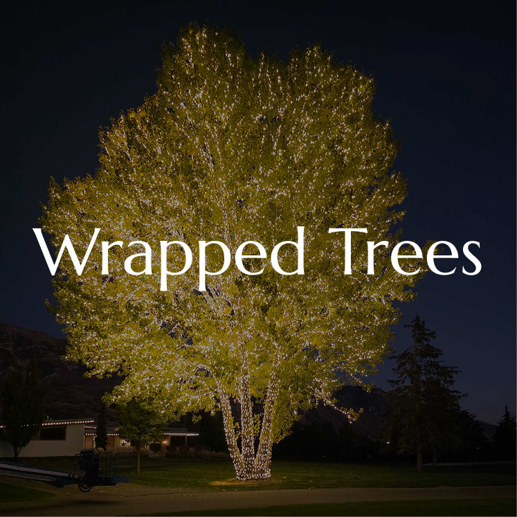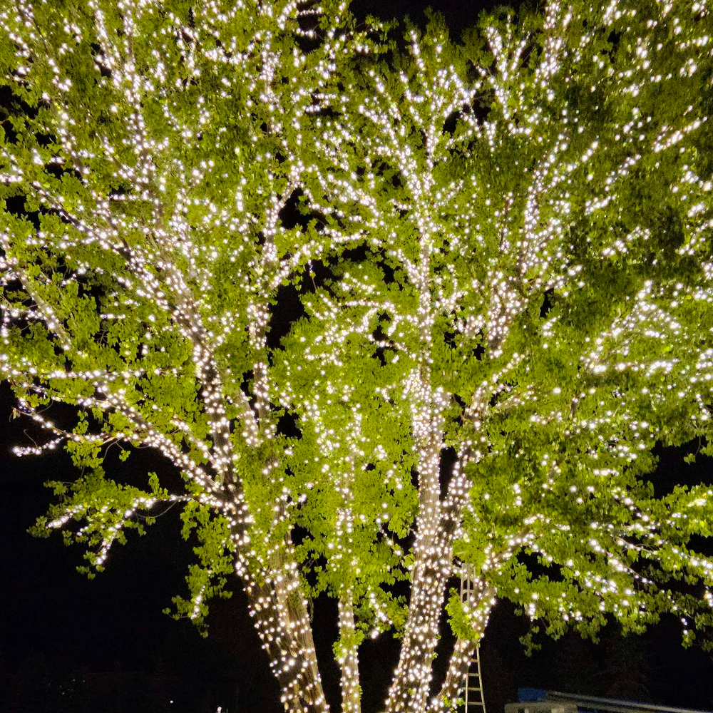 Styling: Ideal for backyard weddings and garden receptions, wrapped trees add subtle light that enhances the natural setting.