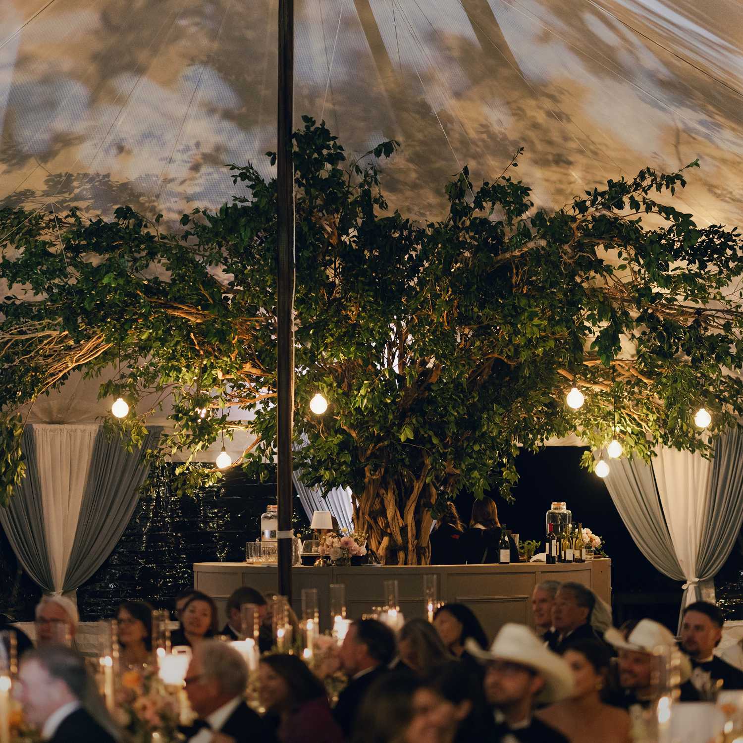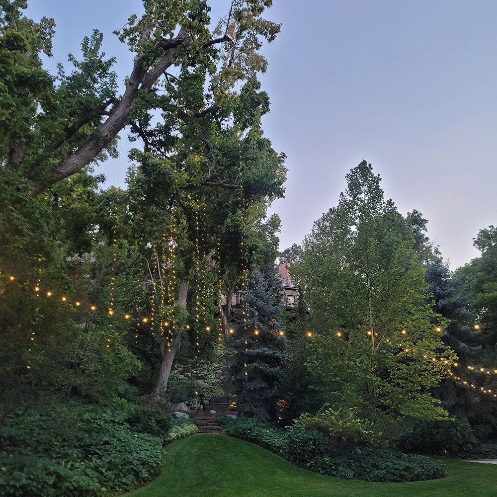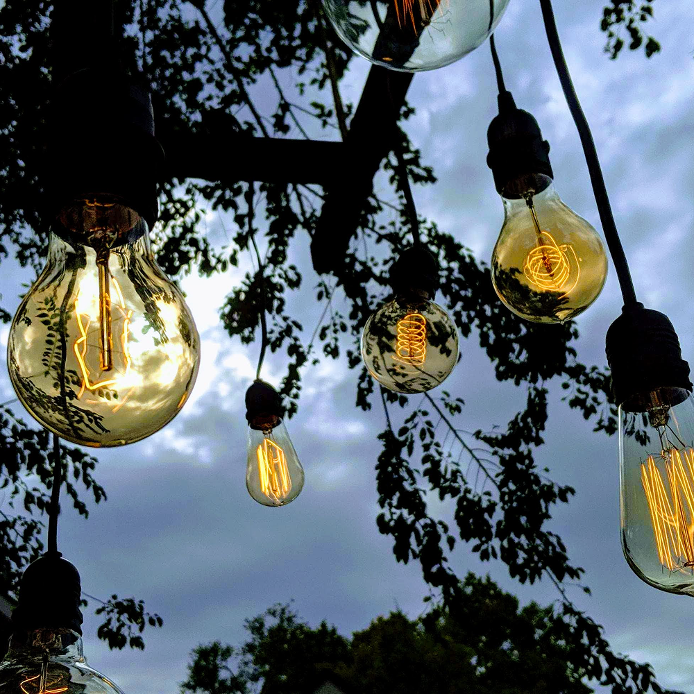 Styling: Ideal for tents, trees, and open spaces, drop lights, pendant drop lights, mini drop lights, and chandeliers add an elevated glow to weddings and backyard celebrations.