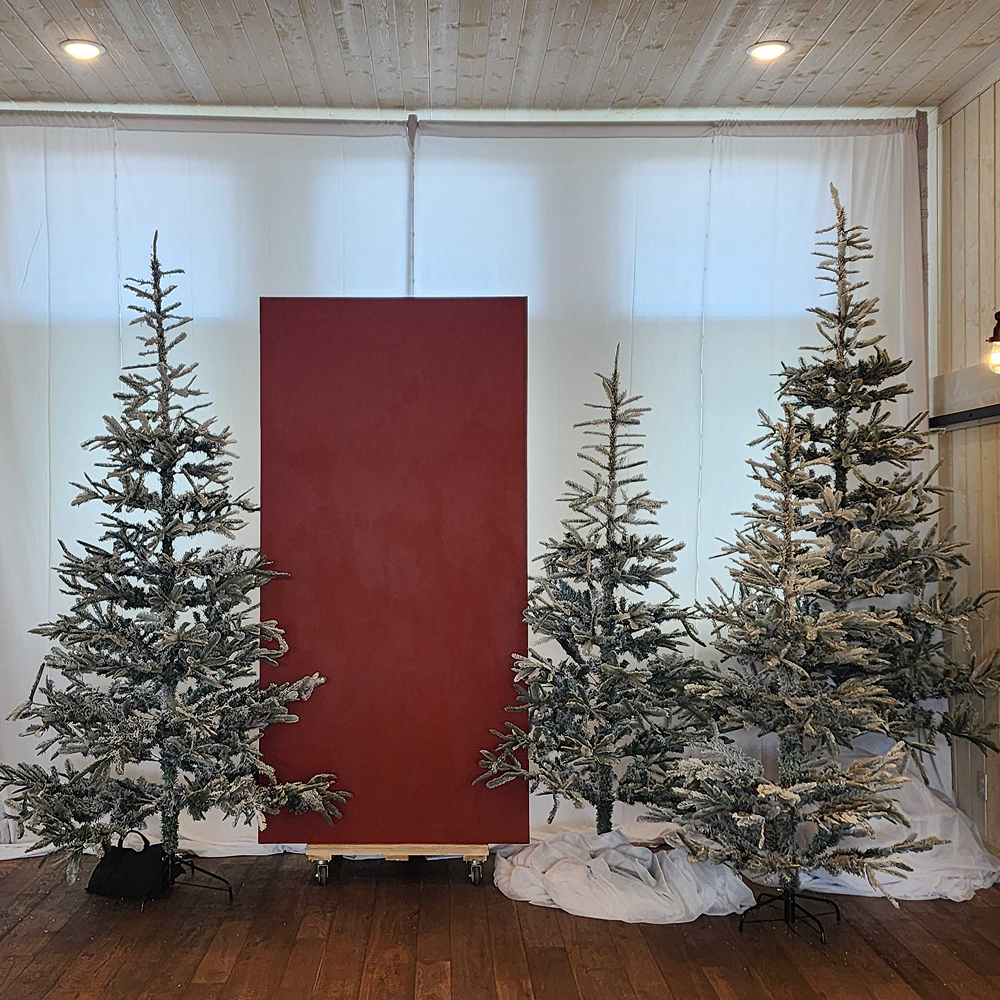Styling: With delicately frosted branches, flocked trees add a cozy yet elevated winter aesthetic. They pair beautifully with uplighting, candles, and soft draping.