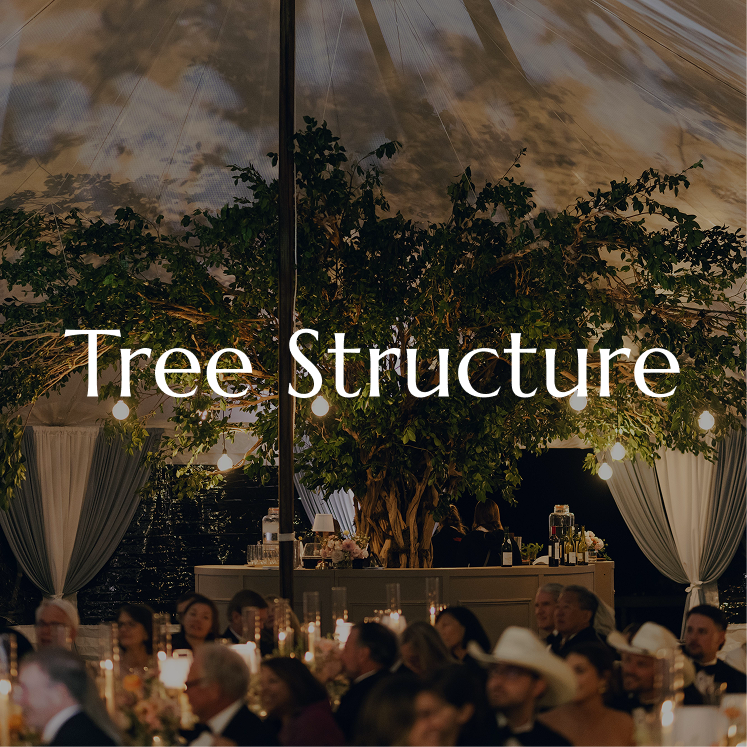 Styling: Tree structures are perfect for creating a custom focal point where a florist can add florals or greenery, with the option to incorporate hanging decor like lights or chandeliers.