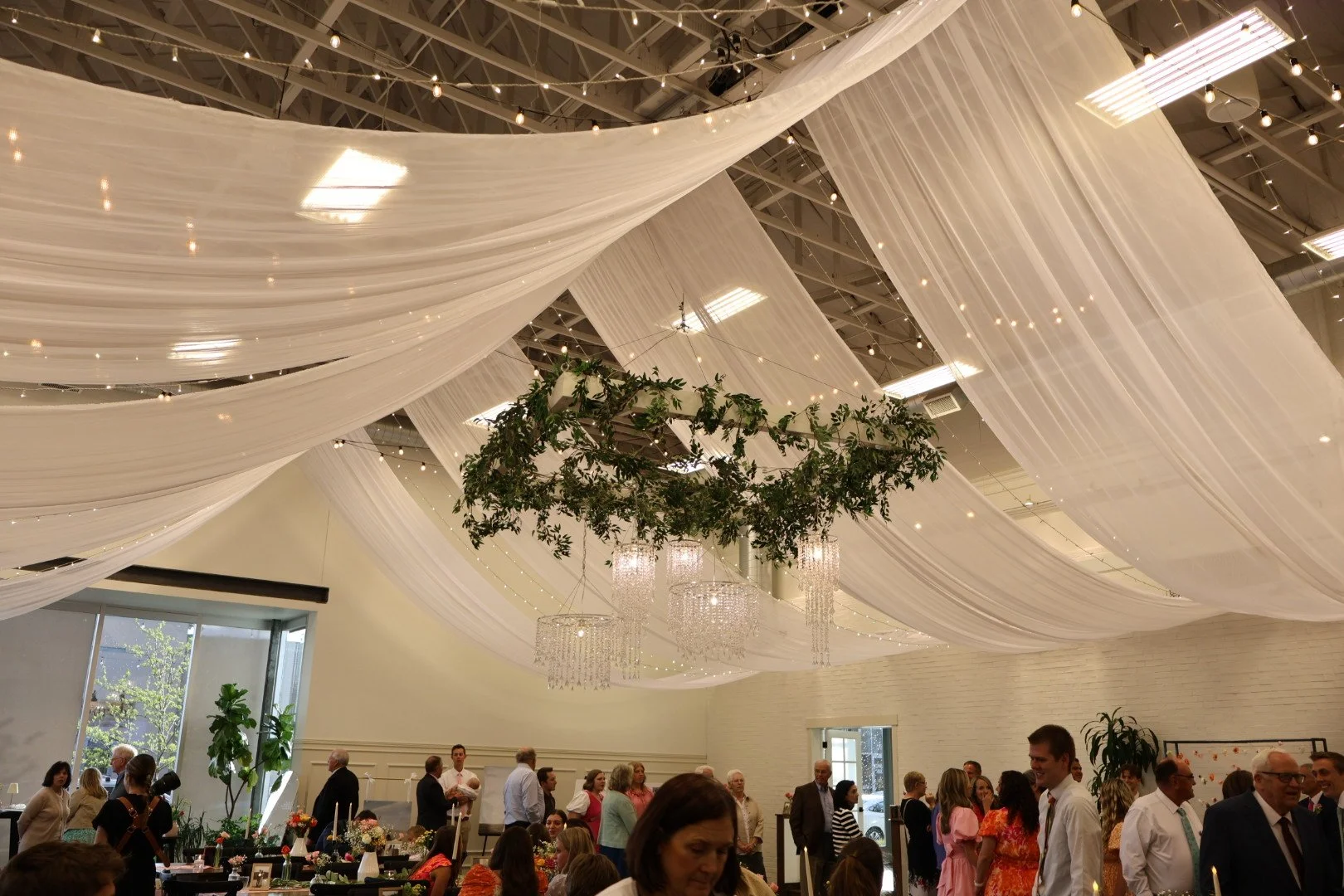 Nestled in Daybreak, Azalea feels like a breath of fresh air with its tall ceilings, whitewashed brick walls make it bright, airy, and full of charm. Get a quick price quote for lighting & draping here by contacting our sales team with one click.