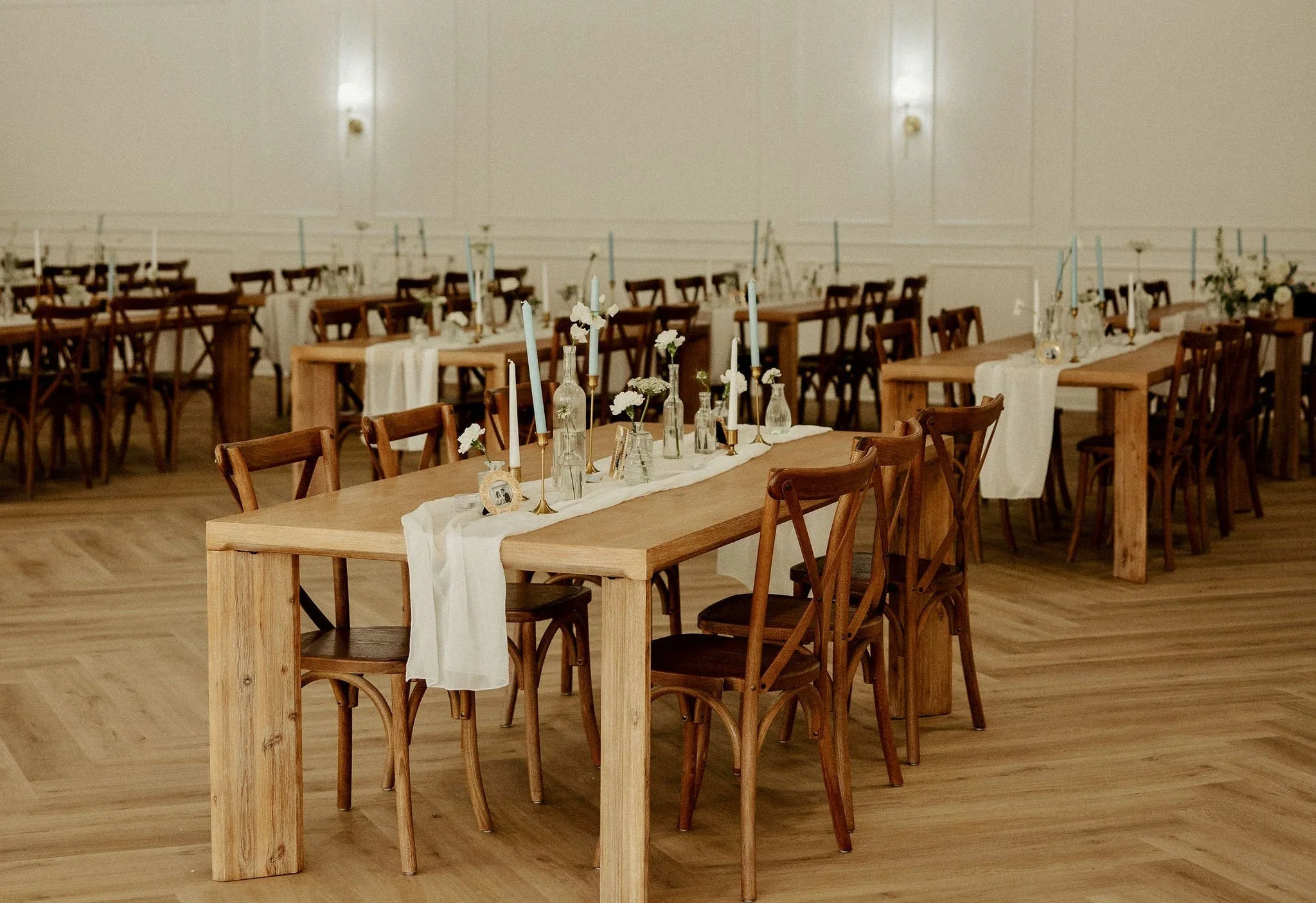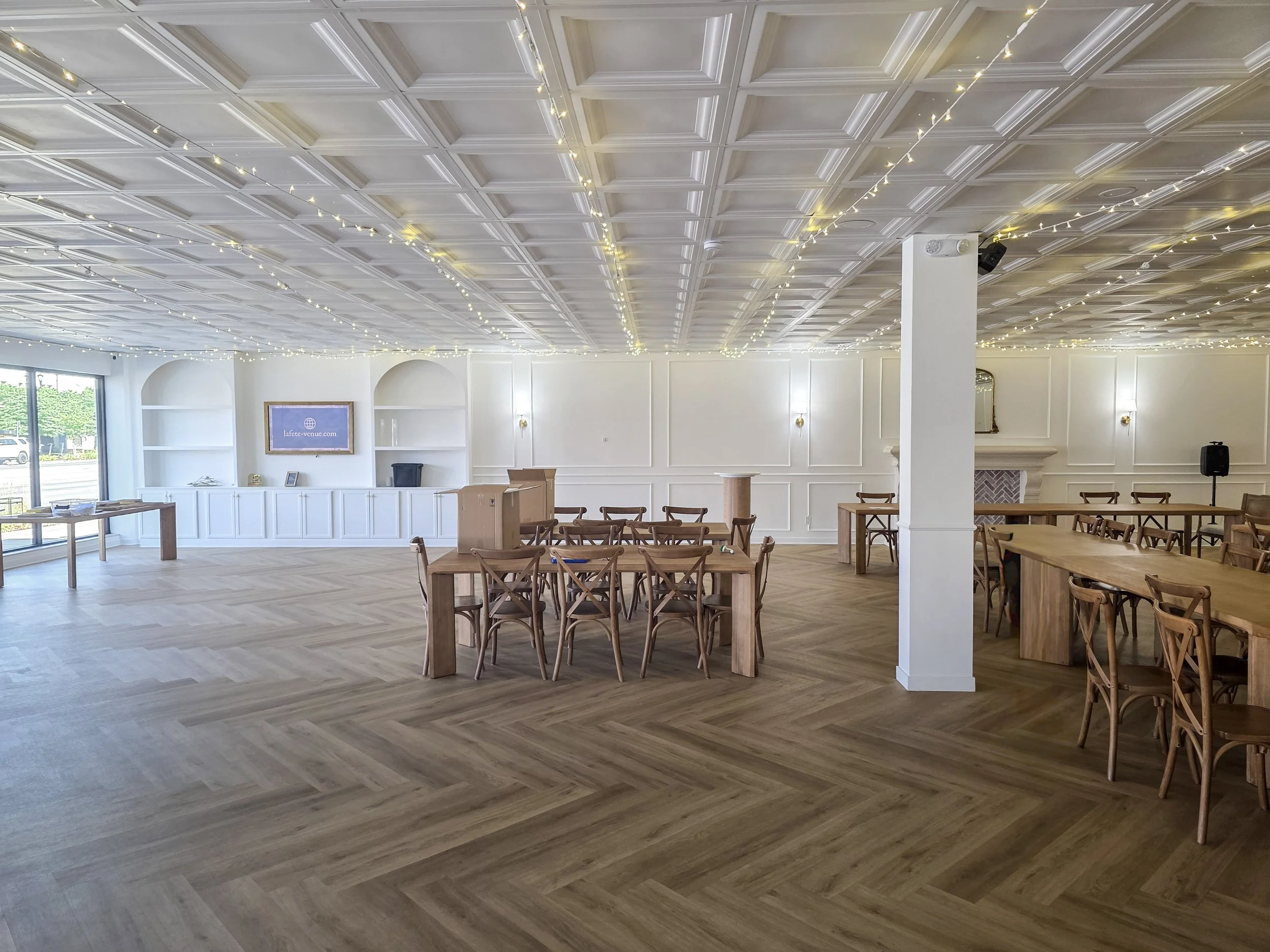 A charming, French-inspired venue in downtown Provo, La Fête brings timeless elegance with its white walls, soft natural light, and spacious ballroom. It’s a beautiful blank canvas that comes to life with custom lighting and draping. Get a quick price quote for lighting & draping here by contacting our sales team with one click.