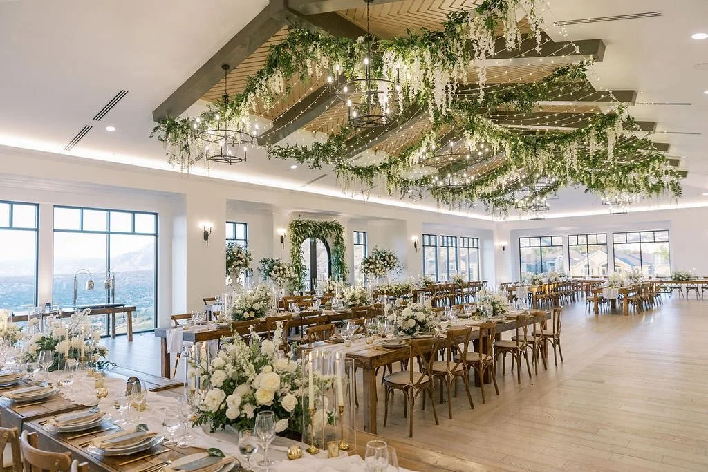Overlooking the Salt Lake Valley with panoramic mountain views, Siempre blends modern architecture with timeless elegance. Its bright, open spaces and stunning terraces become even more romantic with custom lighting and draping. Get a quick price quote for lighting & draping here by contacting our sales team with one click.